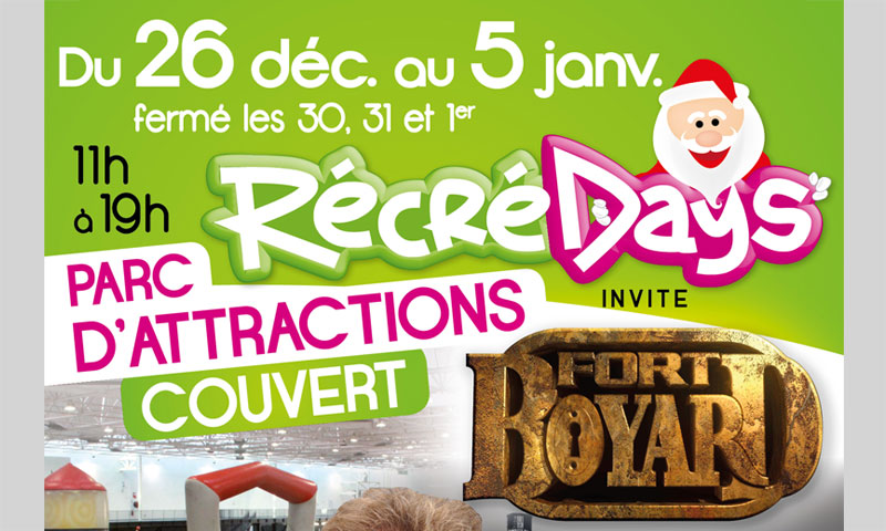 Les clients, petits et grands, sont séduits par ce concept qui permet de s’amuser, dans un lieu sécurisé avec un seul droit d’accés en illimité, quelque soit les aléas de la méteo. Pour toujours surprendre, à chaque édition, RECREDAYS présente des nouveautés : cette année, nous avons le plaisir d’inviter deux personnages emblématiques de l’émission FORT BOYARD. Passe-partout sera présent le mercredi 26 décembre et Passe-muraille le samedi 29 décembre, afin de jouer avec le public au fameux jeu des bâtonnets et proposer des séances de dédicaces. Vous retrouverez sur les autres journées RECREDAYS des jeux également en rapport avec FORT BOYARD.
